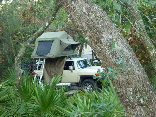 We made it to our first scheduled stop at 5:30 this afternoon. Anastasia State Park in St. Augustine, Florida is quite nice. There are 139 camp sites, but each is surrounded by dense vegetation so you get quite a lot of privacy.