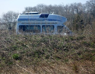 Driving haRVy has proven to be less taxing and more comfortable than anticipated. A lot of that has to do with the design of the front seats. I had been worried about that aspect, but both the driver and passenger areas offer many adjustments to alleviate fatigue. The driver’s seat even has pump-up lumbar support. If I put my feet up on the dashboard I can stretch my legs out straight like on a BarcaLounger and it doesn’t even impede on the driver’s visibility. We both appreciate that the seats are supportive yet not too hard and that they are cloth covered rather than vinyl or leather, both of which can be cold or hot and sticky.