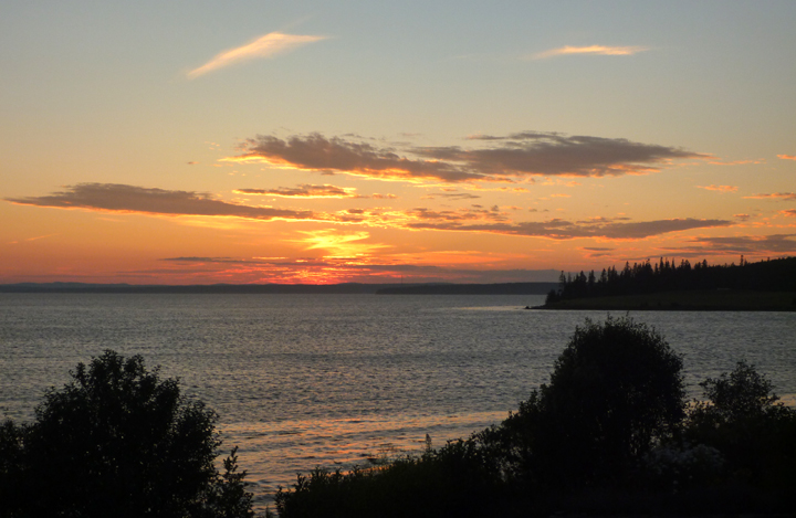 We arrived at Lauri and Doug’s house around 4 o’clock, allowing us over an hour to get settled into our new camp site in their driveway while they were out sailboat racing. Later we enjoyed a cocktail at Dennett’s Wharf before heading over to their friend Bev’s lovely seaside and sunset facing home for a lobster feed. Mother Nature provided a beautiful show while stimulating conversation with the diverse group of guests ensued.