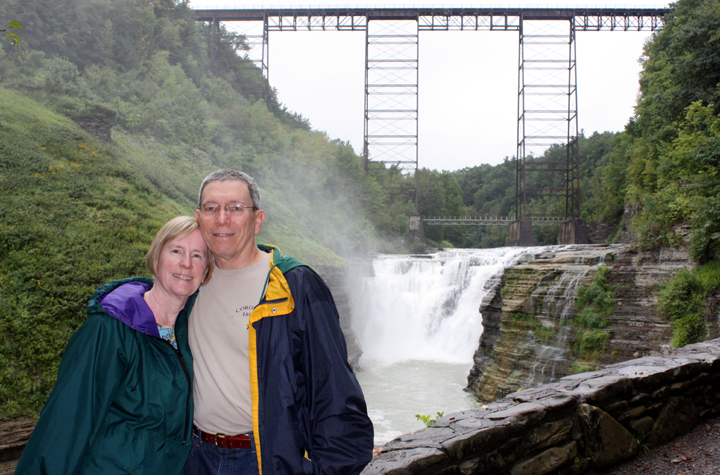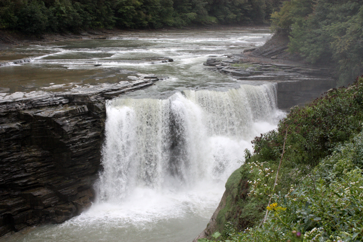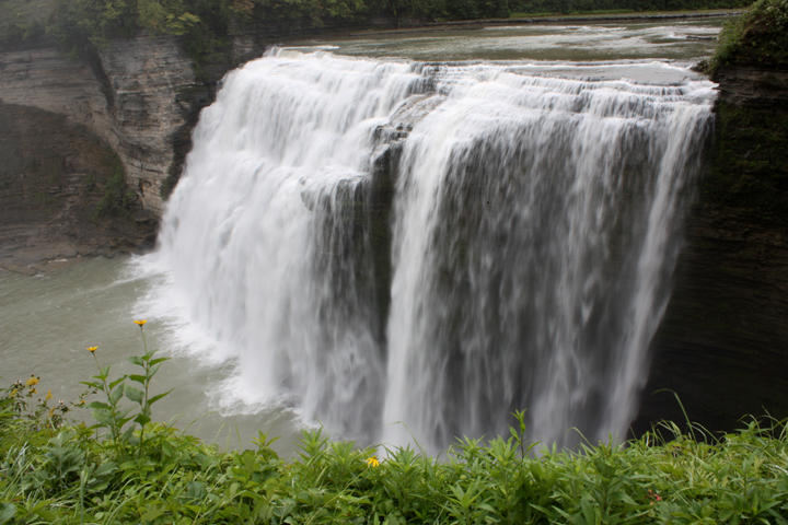 Today we were determined to see the sights here in Letchworth State Park no matter what the weather brought and we really lucked out. While rain threatened nearly all day, it never fell with any force and the worst we had to contend with was some steady drizzle and not even much of that. As things turned out, it was a great day for lots of hiking and waterfall watching and this is exactly what we did. From Middle Falls, to Upper Falls, and finally Lower Falls, we’ve now seen them all!