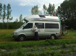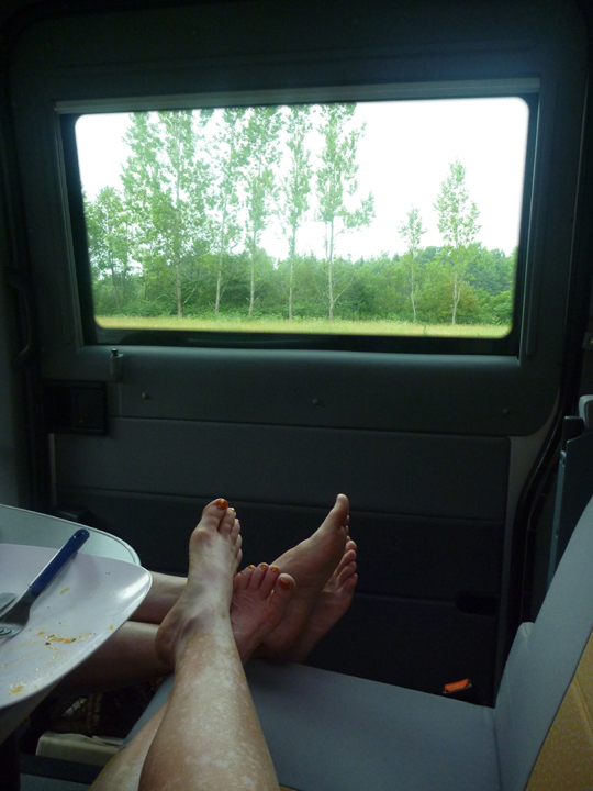 We were just settling in to a long relaxing evening when the mosquitos attached! At first we tried to delude ourselves into believing it was just one or two, but they quickly multiplied into dozens. We had our screens engaged, but quickly discovered which ones were not doing their job and got those closed quickly. By then there were at least 30 or 40 of the buzzing menaces flying around in our mini abode. We thought we were doomed. Then I remembered that I had stashed an Off Clip-On gismo, which I rapidly assembled and switched on. With that going and Al armed with a fly swatter and spray bottle of Off Family Care the battle began. Soon we found the buggers literally dropping like flies, so we squished them one-by-one to make sure they were truly dead. Soon we had dozens of little black spots in the sink and nothing flying around trying to bite us. When all was said and done each of us suffered just 2 or 3 bites. Thank goodness!
