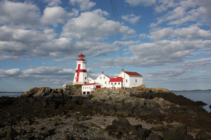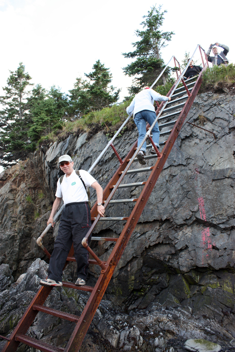 At the time of today’s evening low tide they took us out to the East Quoddy Head lighthouse (the light earlier today in Maine was West Quoddy Head). The tide must be low to access the light. To do so we hiked over rocks, across beaches, up and down 3 staircases, and over a bridge. It was well worth the hike, plus we were happy to get the exercise. This lighthouse, like so many others, has been saved by volunteers who work constantly (weather permitting) to restore and maintain the property.