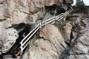 After breakfast we climbed the “Governor’s Staircase,” which begins below the level of high tide. Luckily the tide was low this morning so we were able to reach the bottom stair without getting wet. The first few flights (of MANY) are built under overhanging rock, so it almost feels as if you are ascending inside a cave. After a total of over 450 steps we were treated to another beautiful panoramic view of land and seascape.