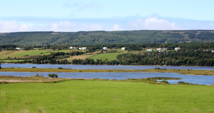 We returned to Highway 1 bound for Port aux Basque, which we took a quick tour of. Since it was less than inspiring we headed further along the coast on Route 470 to the smaller coastal town of Margaree where we parked next to a church with stunning views nearly all around us. The ocean was on one side and expansive fields and distant mountains on the other.