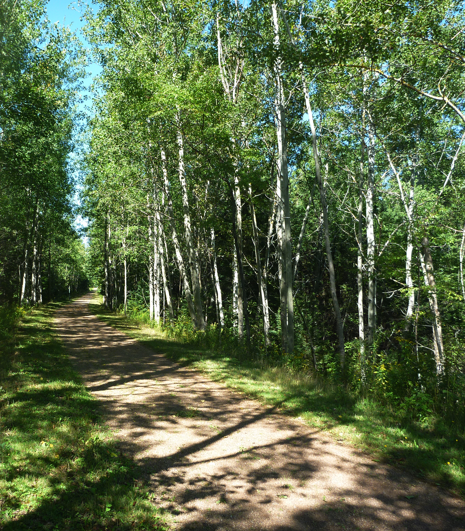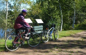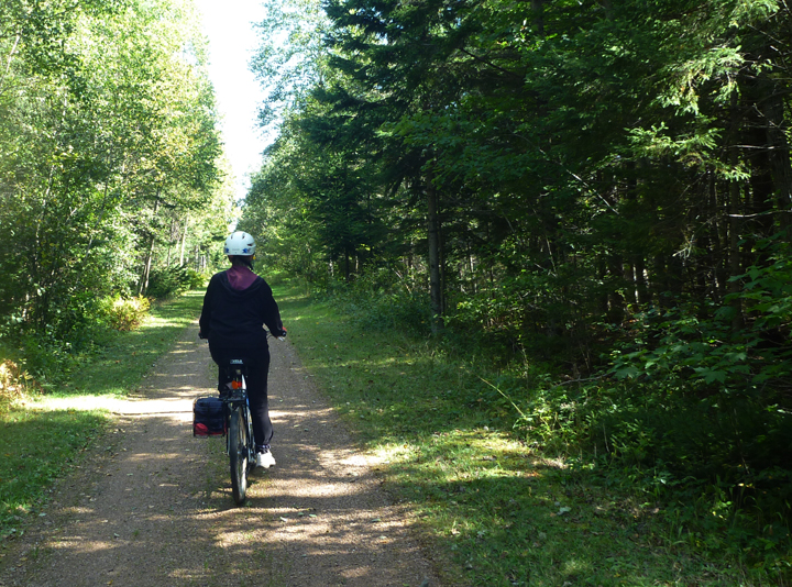 PEI is the first bike-friendly province we’ve visited on this trip. It offers a network of dedicated bike trails over reasonably flat terrain. The others were quite mountainous with only roads (without bike lanes) to ride on, which we did not find conducive. We celebrated by dusting off the bikes and taking a ride on the local branch of the Confederation Trail. This rail bed conversion crisscrosses the island for several hundred kilometers. The segment near Murray Harbour is a very pleasant, mostly flat ride protected from today’s wind by trees on both sides. We saw one walker and one other bike rider during over the course of our 3+ hour ride.