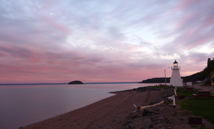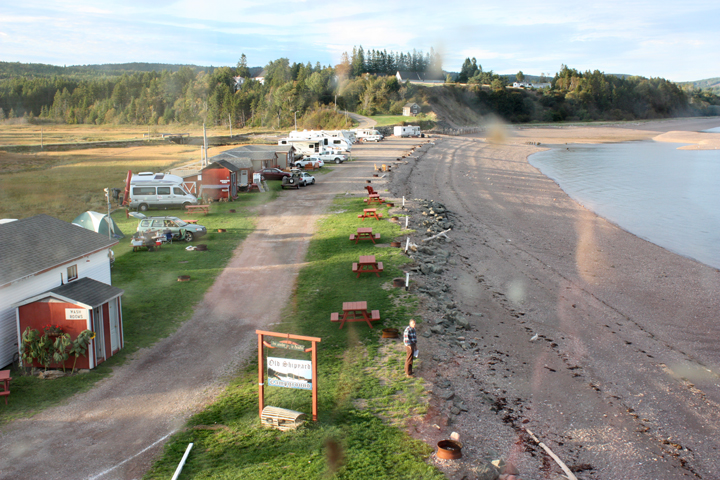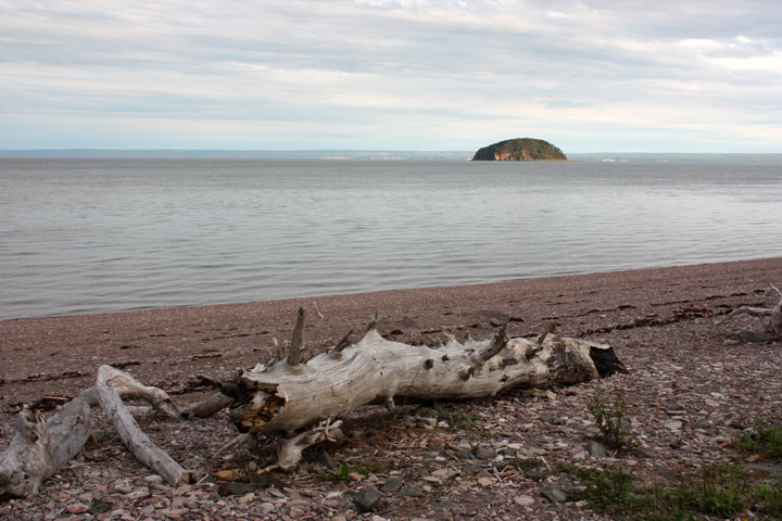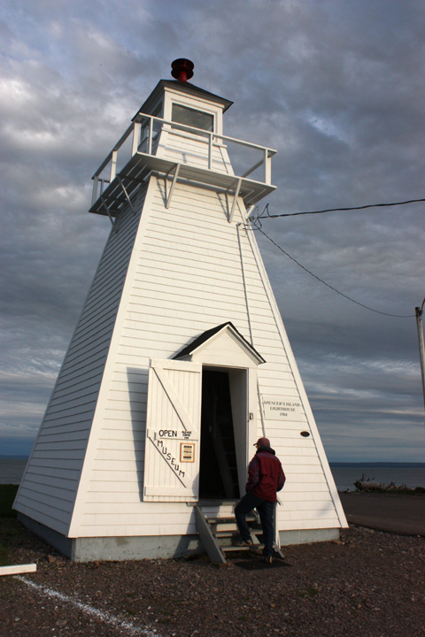 We drove out to Advocate Harbor and Big Beach at Advocate for a quick look around and then doubled back a few miles to a seaside campground we had spotted on the way in at Spencers Island (town named after a nearby uninhabited island). The site was a shipyard in the late 19th century and early 20th century and the lighthouse here serves as a tiny museum with some interesting artifacts and historical notations about the schooners and brigantines that were launched here.