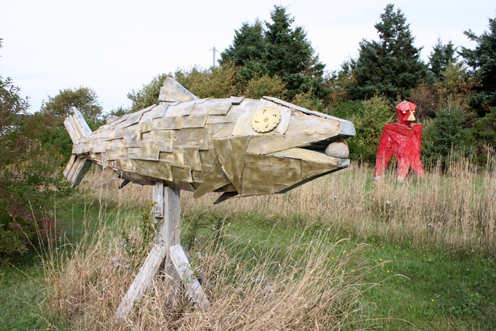 We didn’t get more than a couple blocks further down the road before we saw two more artistic endeavors. The sculptor at the last one was delighted that we stopped to admire his work and explained that they had been made with the surplus building materials from his home.