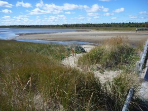 After a blueberry pancake breakfast we got on our bikes and road several miles on the park’s perfect (flat & well maintained hard pack gravel) bike paths. Along the way we also hiked a boardwalk trail across to an island then on to a very long barrier beach. We watched two eagles fly relatively close by and then land further away with at least ten others.