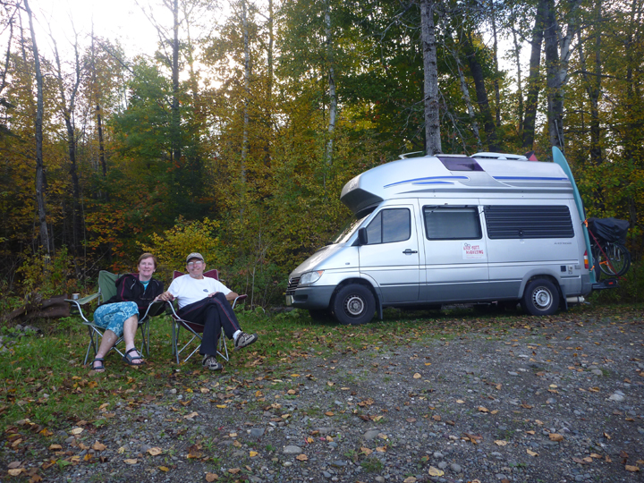 This morning was so sunny and calm (once the fog lifted) that we decided to stay put in our beautiful free campsite on the St. John River in Wicklow, New Brunswick. We spent a few hours leisurely paddling our kayaks and ate a picnic lunch at a private grassy airfield we found along the shore.