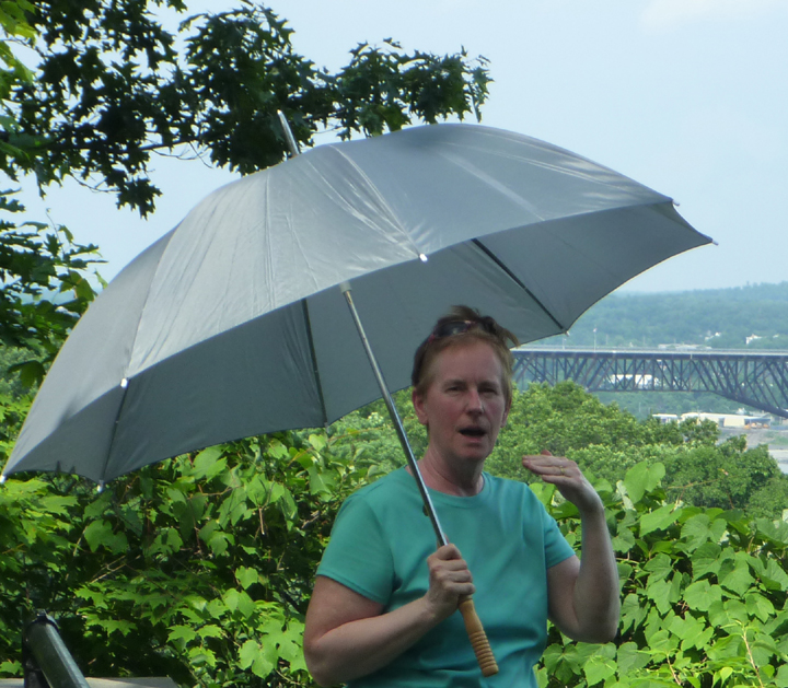The original plan was to bike the Hudson River Rail Trail near Poughkeepsie, New York, but with hot humid 90+ degree temperatures, we opted to view the river from a scenic lunch spot nearby. We then took a hike through the park at the base of the highway bridge over the Hudson and out onto it to experience Joseph Bertolocci’s Bridge Music.