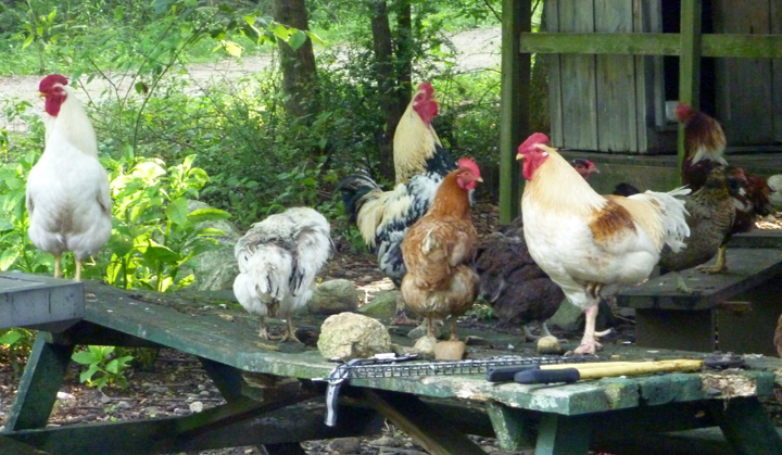 We had an excellent night’s sleep before being awoken at dawn by a chorus of roosters crowing. The wake-up crew appears in the photo below.