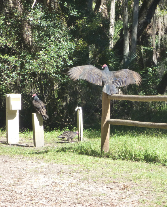 A sign near the entrance to Myakka River State Park says, “Welcome to Old Florida” and they weren’t kidding. Once you got out of your car and hiked a few yards from the parking lot, it really felt like a tropical forest. The state has done a terrific job of preserving this land mass for the mammals and fowl that rely on it. During our brief visit we saw several very large alligators (from a respectful distance), a water snake eating a fish (very closeup from a viewing platform above some water hyacinths), a variety of exotic birds (including my favorite the Roseate Spoonbill), a few small deer, and more. We also hiked a beautiful nature trail that included a very high viewing tower and canopy walk.