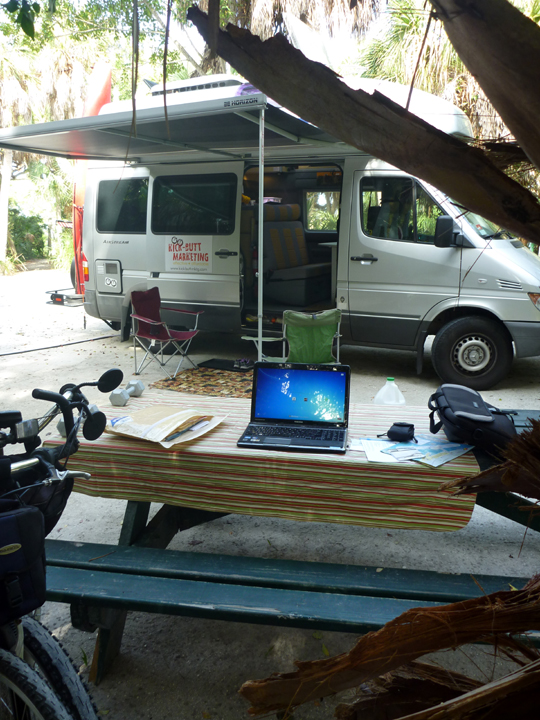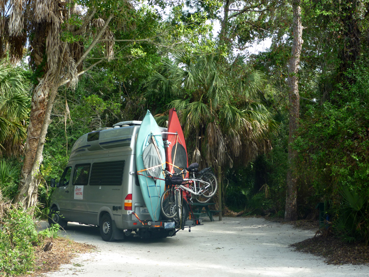 Fort DeSoto Campground near St. Petersburg, FL was highly recommended by several people, so we had to add it to our itinerary. We are certainly glad we did! Located on five keys well out in the Gulf (it took several bridges and tolls to get there), the natural oasis offers miles of bike paths, a kayak trail, beautiful beaches, and beautiful, private campsites.