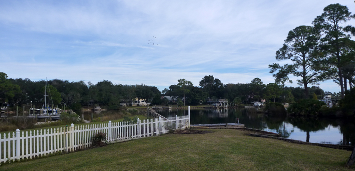 Now we’re in Fort Walton Beach staying in the back yard of a friend I raced Prindle Catamarans with in the 70’s. Randy has a great set-up here on charming little Lake Earl that leads into Choctowatchee Bay and eventually the Gulf. We have already paddled the lake, bay, and nearby Chico Bayou. However, our outdoor activities were brought to a halt when a cold front brought in near freezing temperatures and high winds last night. Today’s high was only in the 50’s, which felt mighty cold after enjoying average temperatures 20 to 30 degrees warmer for the past few weeks.