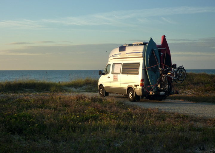 After the Bulli Brigade outing, we drove up the Gulf Coast a few hours where we came upon Florida’s “Nature” or “Hidden” Coast. If I had known more about this area beforehand, we would have spent more time here as it presents lots of opportunities to get out into what some consider more “Old Florida” surroundings. We arrived in the little coastal town of Steinhatchee with just enough time to pick-up a pizza and find a parking spot before sunset. The photo below shows the harbor-side spot we chose to boondock.