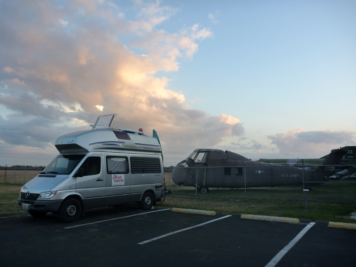 The drive through Houston on Interstate Route 10 was very hectic and stressful even though we timed our passage through to occur after rush hour. Very happy that Al was at the wheel! It got more civilized as we got closer to San Antonio, but we are both glad we usually choose to avoid major highways. Arrived at that evening’s home for the night, the Texas Aviation Museum at the Stinson Airport with plenty of time to view their collections, take a bike ride around the area, and watch several private plans and helicopters take off and land before dark.