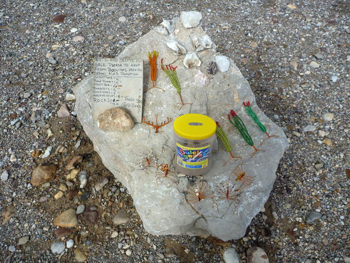 No border patrol here because the Mexican side here is extremely remote with no paved roads. This guys is coming across to monitor and restock his “gift shops” shown below. Proceeds supposedly help the school on the Mexican side of the border…