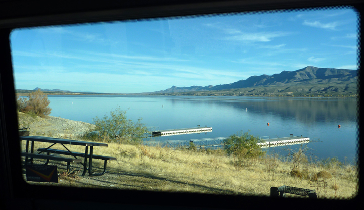 After a very quiet night and good sleep, high winds woke us early once again. We had checked the forecast the night before and thought we’d be OK if we got an early start, but the gusts started as soon as the sun rose over the horizon. The winds howled for the entire 4+ hour drive to Tucson, AZ, but Al did a terrific job behind the wheel! As each big truck came along side us to pass, he would feather the steering wheel towards them and then back away from them after they pulled ahead. He says that putting the necessary pressure on the wheel to keep going straight in the wind gusts feels much like sailing a boat with weather helm. Who would have thought that our sailing experience would come in handy on the highway! We had previously been apprehensive about driving haRVy in windy conditions because he is so tall, but this day gave us more confidence in his stability.