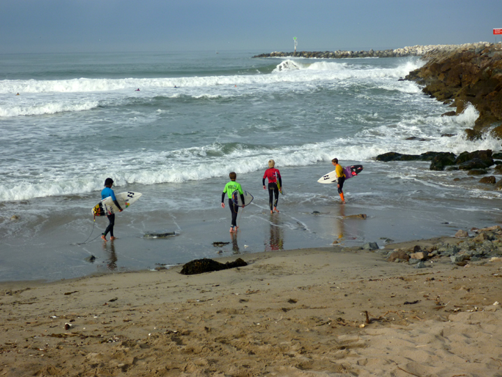 While we were unofficially “camped” at Ventura Harbor, before and after our Santa Cruz Island outing, a youth surfing championship took place. It was quite a scene, so of course I couldn’t resist taking a few photographs of the adorable little surfkins and their proud parents. The waves were quite large (not represented well in photos) with quite a serious riptide present, so the excitement and anxiety was palpable.