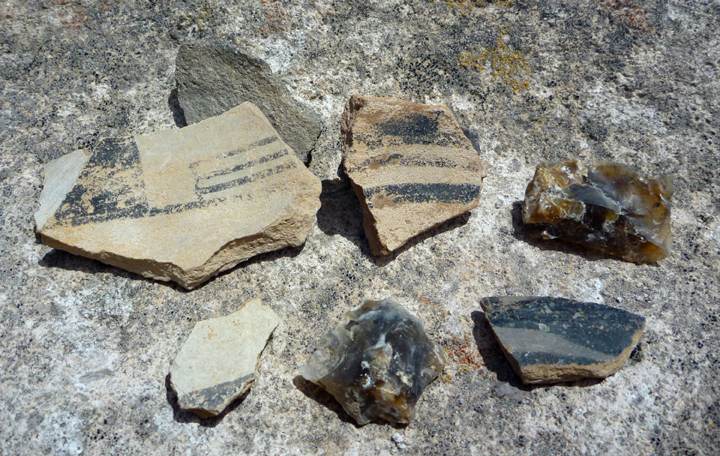 A few pottery shards and rock fragments kindly left by previous hikers for others to appreciate.