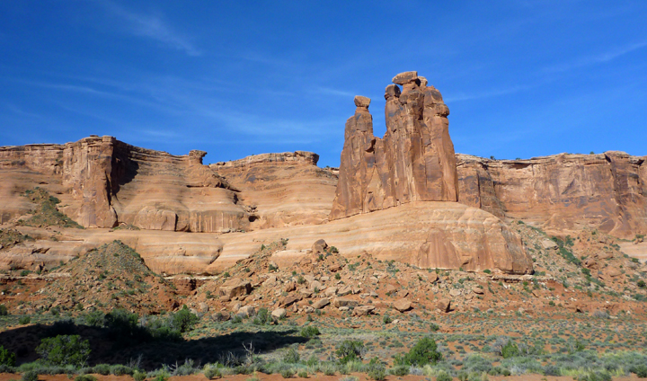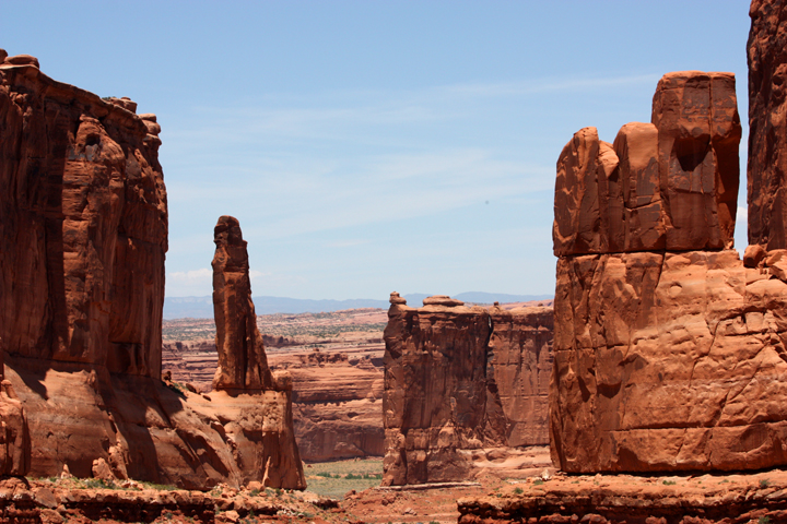 We spent a couple of days in Moab, UT (billed as the most cosmopolitan city in Southern Utah) before heading over to Arches National Park. We got there early to hike the Windows Trail before the predicted 100-degree high temperature hit. We did get out of the car a few more times to take some quick pics, but it was just too hot to stay out long.