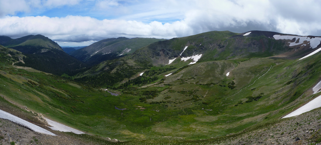 Glad I took this shot during our first morning at Rocky Mountain National Park because we didn’t see another blue sky like that during the remainder of our four-day visit. This is the view from Glacier Basin Campground where we spent our first three nights. While there we managed to work in a few good hikes without getting caught in any of the numerous hail and thunderstorms that occurred.