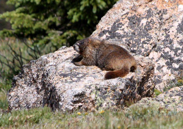 Our third day was a total washout with rain falling all day long and low clouds blocking views. We had scheduled an all day tour of Trail Ridge Road with the Rocky Mountain Conservancy, but it was postponed until the next day when better weather was forecast. Luckily the rain chased away some of the tent campers so we were able to get a site at the Aspenglen campground. We took this opportunity to grocery shop, get laundry done, and take showers in nearby Estes Park.