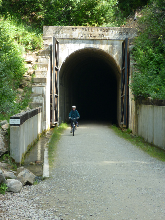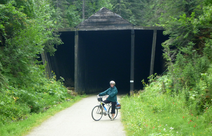 Our second outing was to peddle the Hiawatha Trail, a 15-mile rail trail that crosses the rugged Bitterroot Mountains between Idaho and Montana. We had to take a bit of a detour from our intended route to do it, but the prospect of riding our bikes through ten tunnels (including one nearly 2 miles long!) and across seven high steel trestles seemed worth the effort.
