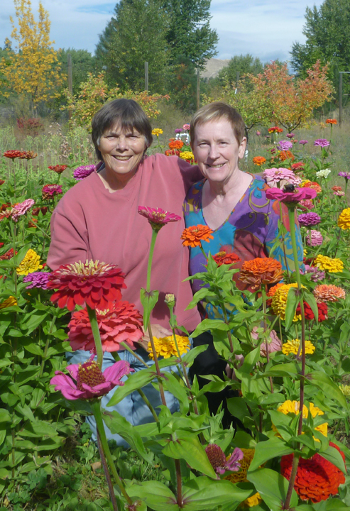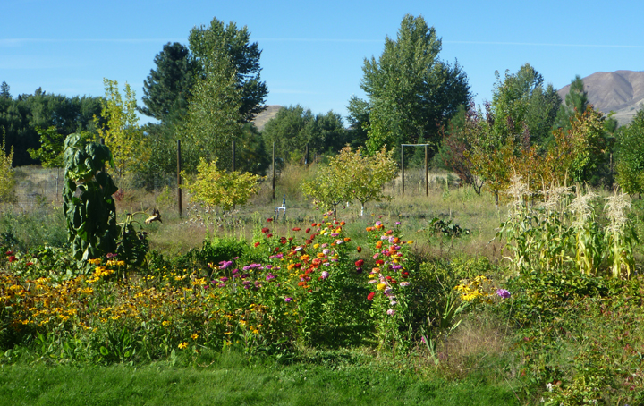Janet’s garden. Flowers and vegetables near the house and a fruit orchard out back.