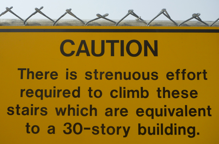 Historic photo showing location of light on the headland and the long stairway down to it from the top.