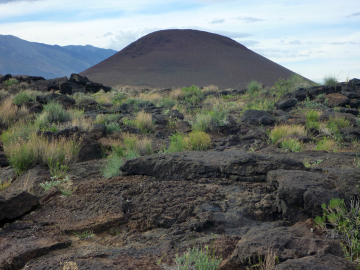This red cinder cone, visible to the north of the falls (and our campsite), is the result of the violent ejection of trapped gases and molten material into the air from a vent in the earth’s crust. Cooling quickly when exposed to the air, the molten material formed a porous rock known as scoria, which built up around the original vent forming this cone-shaped hill.