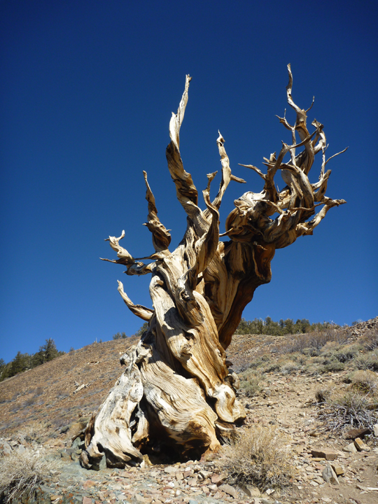 Quote I liked from a Yelp review: Hunched-over, with gnarly and crooked limbs and peeling bark, the Bristlecone Pines of the California White Mountains look like the little old ladies of the plant kingdom. Despite their distinction as the oldest living things on earth, they are osteoporosis-free, and as hard as the dolomite rock they grow in. Knock on wood, and you might just bruise your knuckles.