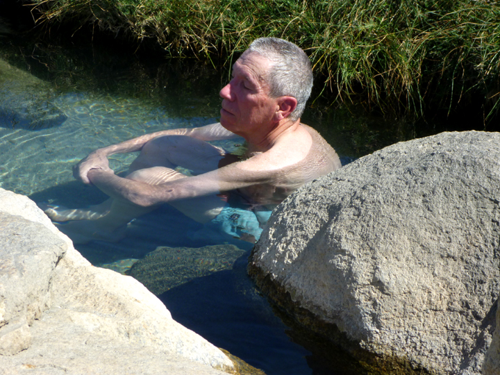When one travels through areas exhibiting evidence of previous volcanic activity, you just know there has to be some hot springs around. The trick is to find them! Thanks to Marianne Edwards’ excellent Shunpiker’s Guide to California Boondocking The Desert and Eastern Sierra, we had explicit directions to some of the best in the area.