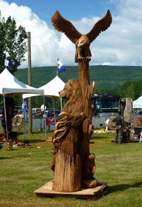 We just happened to pass through Chetwynd, BC in time for their biggest annual event – the International Chainsaw Carving Championship. Over time (this was the 11th annual) this event has given the citizens of this small town something to boast about. “Community Carved by Success” is even their town slogan. Nearly 150 carved sculptures are permanently displayed around town with new ones added every year after each competition.