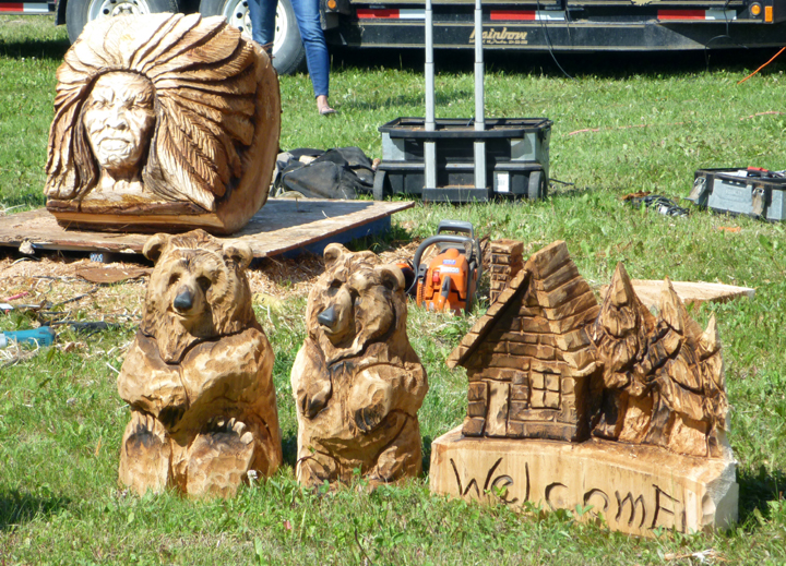 On Sunday afternoon each competitor carved what they could in 90 minutes from a single round of cedar. These pieces were all auctioned off to an eager crowd.