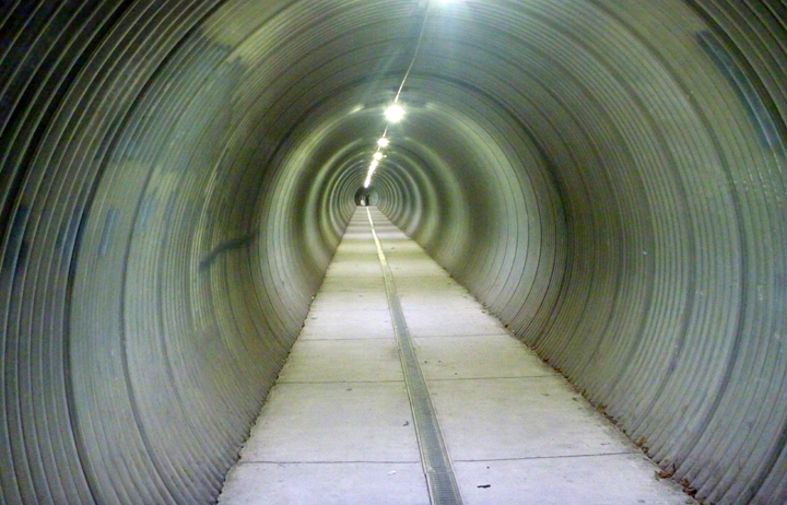 Tunnel entrance. Built in A-Frame shape to withstand avalanches.