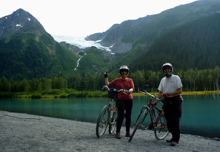 Biking the beautiful Trail of Blue Ice that passes right behind the Williwaw Campground we stayed in.