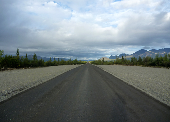 Denali Highway looking east – nice hard pack gravel. We boondocked off the road to the right.