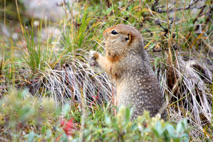 Wildlife along the trail. Arctic Squirrel above, hiker below.