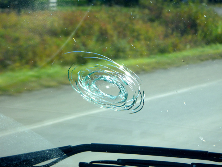 While driving down the highway just two days later we heard a very loud BANG! It took us both a few seconds to realize that a truck heading in the opposite direction had kicked up a stone that then bounced off our windshield…ugh.