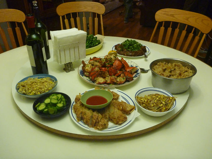 Michael serving up the sticky-rice stuffed turkey for the Thanksgiving supper he graciously invited us to.