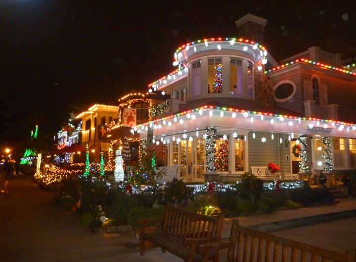 Houses, boats, docks, even light posts and bridge railings get decorated for the holidays.