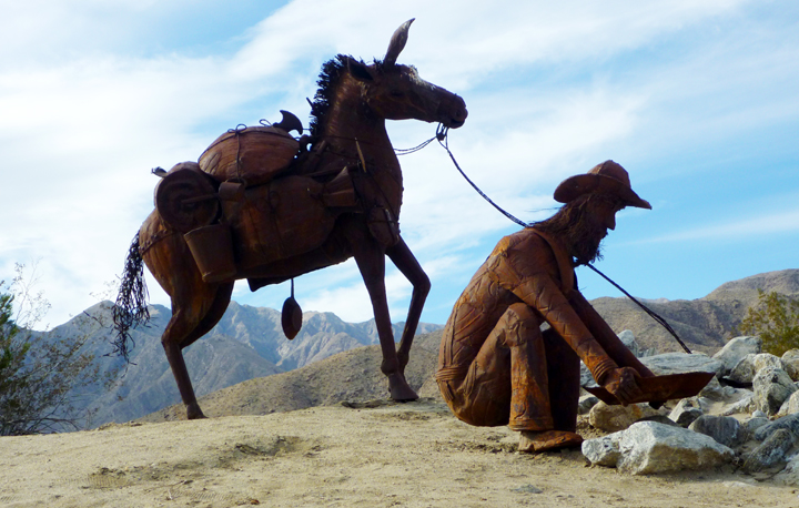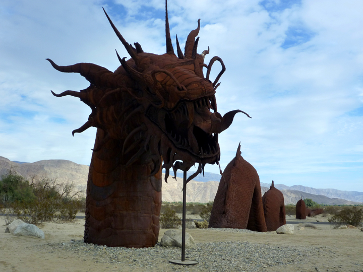 The late Dennis Avery (of Avery Labels) envisioned the idea of adding ‘free standing art’ to his extensive Borrego Springs property. He commissioned artist/welder Ricardo Breceda to create steel welded sculptures. There are now over 130 spread out across the land. It’s fun to hunt for them.