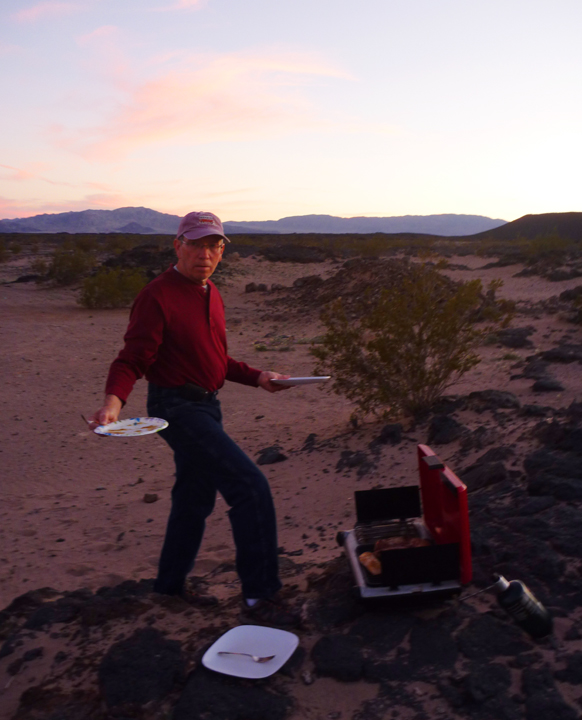 From MaryEllen’s place in Indio, CA, we drove over the mountains on Highway 74, the “Palms to Pines Scenic Highway,” which it truly is.  Our winding journey began in the low desert at just 220-feet of altitude. We ate lunch at 4,000-feet at Pinyon Flats and camped in the Cleveland National Forest at 2,800.