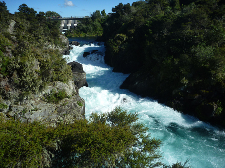 Viewed the thrice daily dam release at Aratiatia Rapids (before release above).