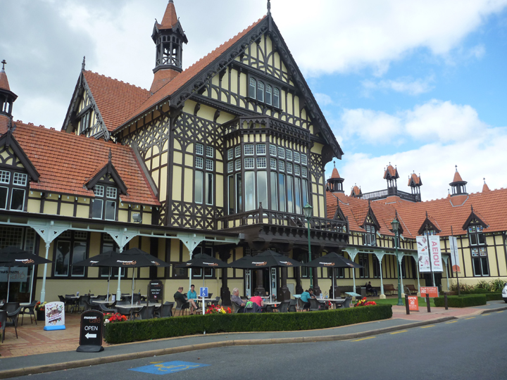 The Rotorua Museum is housed in this amazing historic building (1908 bath house). We enjoyed a very informative free private tour (only because nobody else showed up) of an extensive Maori exhibit, the roof top viewing platform, and much more.