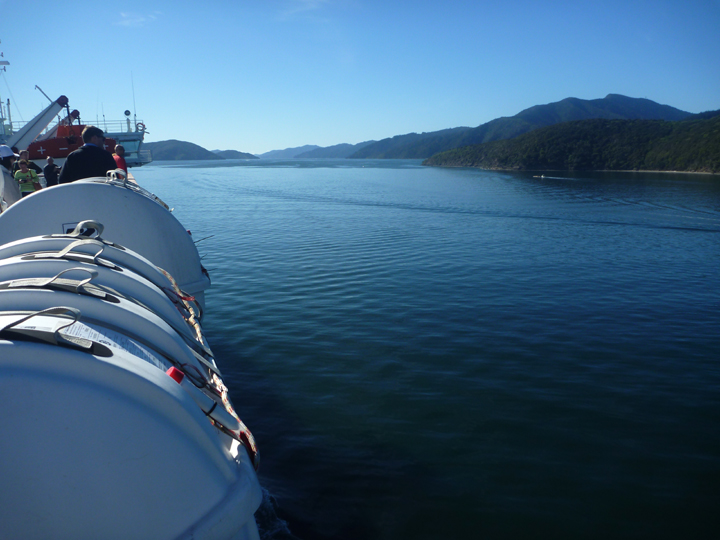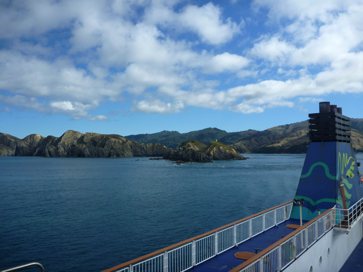 Pulling away from the ferry dock in Picton as we say a sad goodbye to South Island.