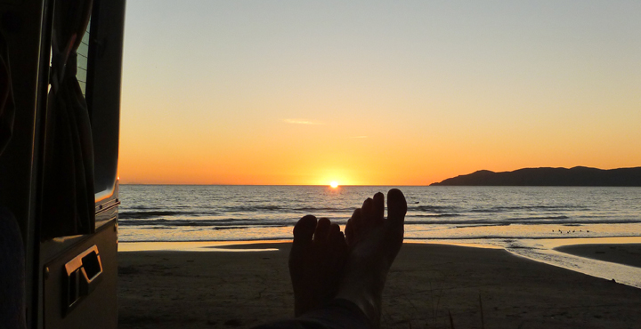 Beach view from our free camp site on Raumati Beach. “Raumati” is the Māori language word for summer. I bet this beautiful beach is hopping in season. Was still pretty nice during our mid-Autumn visit.