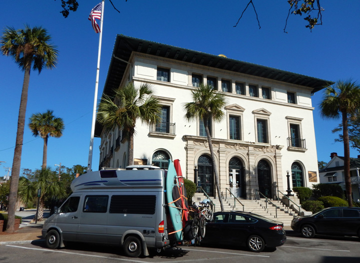 Our first stop in Florida was just over the border at Fernandina Beach. When we arrived at our Boondockers Welcome host location, Mike invited us to walk with him and his granddaughter into town for the Christmas tree lighting festivities!