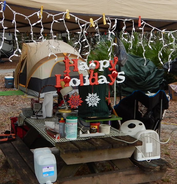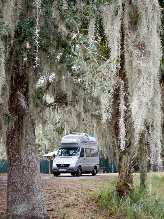 Nice campsite under majestic live oak trees. The sign at the entrance to each Florida State Park states, “The best in the nation,” and so far we would tend to agree.